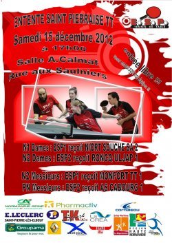dernière sortie en 2012 de nos équipes nationales messieurs et dames à la salle Alain Calmat à partir de 17 heures ce samedi 15 décembre. les joueurs et joueuses Saint Pierrais auront à coeur de bien terminer cette première phase de la saison 2012/2013 ceci afin de se placer au mieux pour la 2ème phase.