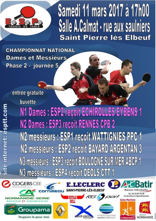 Le samedi 11/03/2017 le championnat national phase 2 2016/2017 à domicile pour cette 5ème journée de l'année 2017. A partir de 17 heures dans le gymnase Alain Calmat rue aux Saulniers entrée libre, spectacle assuré.
