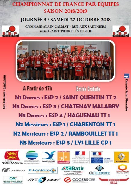 Le samedi 27/10/2018 le championnat national, phase 1 2018/2019, pour le compte de la journée 3, reprend à domicile. A partir de 16h00 pour la prénationale masculine salle Dominique Montier et à partir de 17 heures dans le gymnase Alain Calmat rue aux Saulniers entrée libre, spectacle assuré.