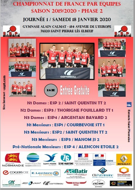 Le samedi 18/01/2020 le championnat national phase 2 2019/2020 J1 reprend à domicile. A partir de 17 heures dans le gymnase Alain Calmat 174 boulevard de l'Europe entrée libre, spectacle assuré.