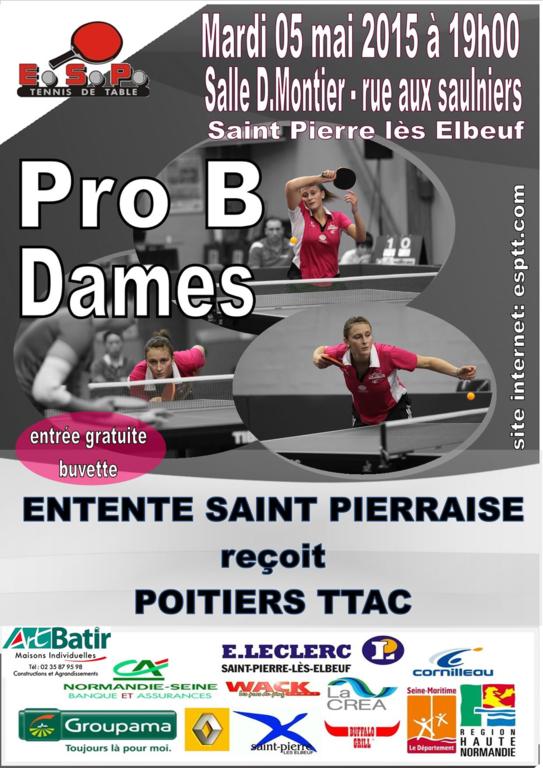 Mardi 5 mai à partir de 19 heures, notre équipe fanion reçoit le leader Poitiers déjà mathématiquement champion de France à 2 journées de la fin du championnat. Pöur les Saint Pierraises c'est la cloture de cette saison car elles sont exemptes pour la dernière journée.