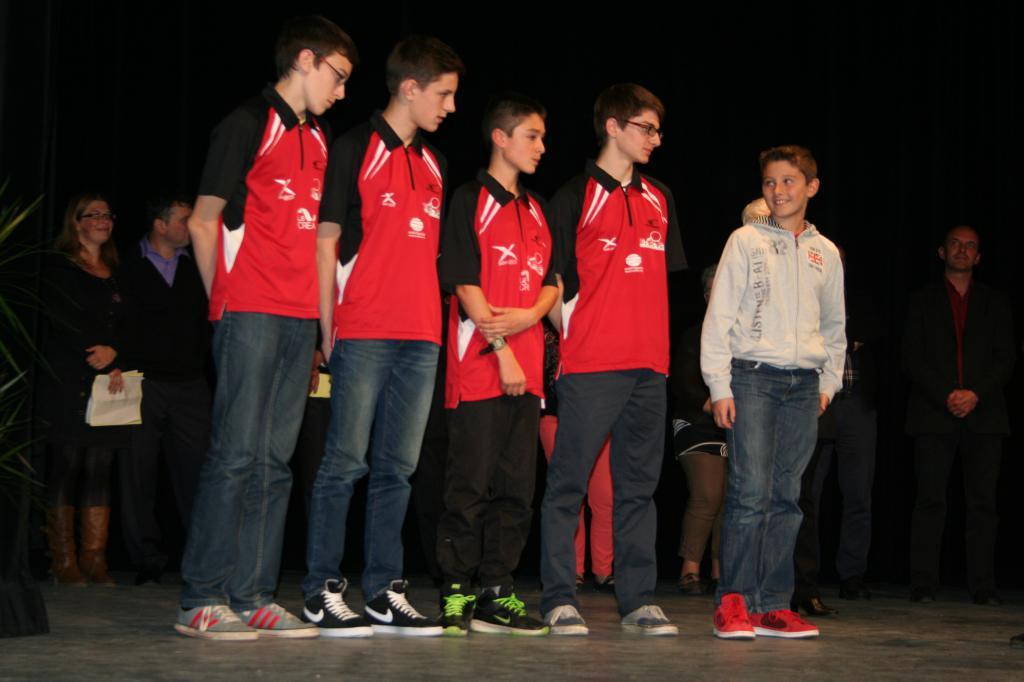 Remise annuelle des récompenses pour cette année 2014 aux sportifs et bénévoles méritants. La municipalité Saint Pierraise a ainsi récompensé pour leur parcours sportif : Paul Cesselin, Louis Bretot, Maxime Ferreira et Arthur Michiels tous nés en 2000 et issus de l'école du club. Ils évoluent ensemble en championnat senior Départementale 3 coachés par Sophie Cavé.Ils participent à toutes les épreuves jeunes (et s'entrainent au moins 2 fois par semaine). En cette occasion le Président Mr Patrick Parmentier a reçu la médaille d'or de la Jeunesse et Sport et de la vie associative. Ils ont tous été félicités et chaleureusement applaudis par Mr le Maire Patrice Désanglois et son équipe ainsi que par l'assemblée .