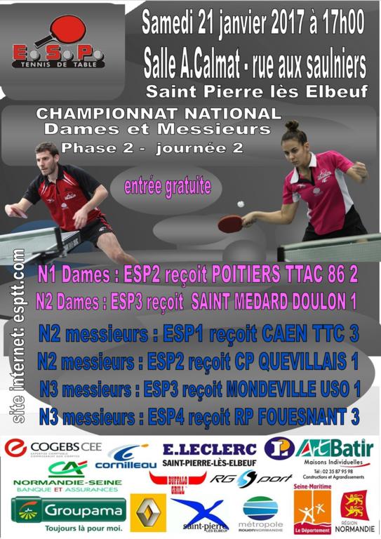 Le samedi 21/01/2017 le championnat national phase 2 2016/2017 reprend à domicile pour cette 2ème journée de l'année 2017. A partir de 17 heures dans le gymnase Alain Calmat rue aux Saulniers entrée libre, spectacle assuré.